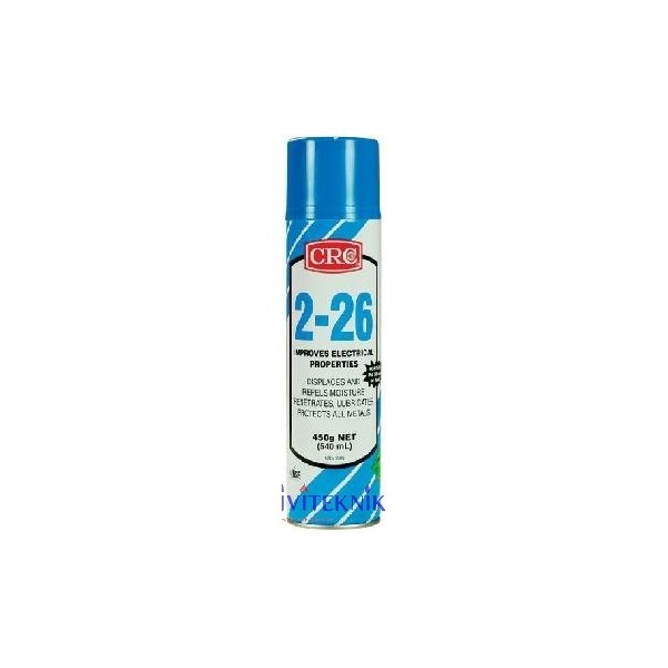 CRC 2-26 displaces and seals out moisture. Prevents corrosion, cleans, lubricates, penetrates. CRC 2.26 is a stable, inert organic formula , especially prepared to prevent and repair electrical failures due to moisture, corrosion, dirt or friction. Contains no silicones. Non-flammable.A '6 in 1' product: